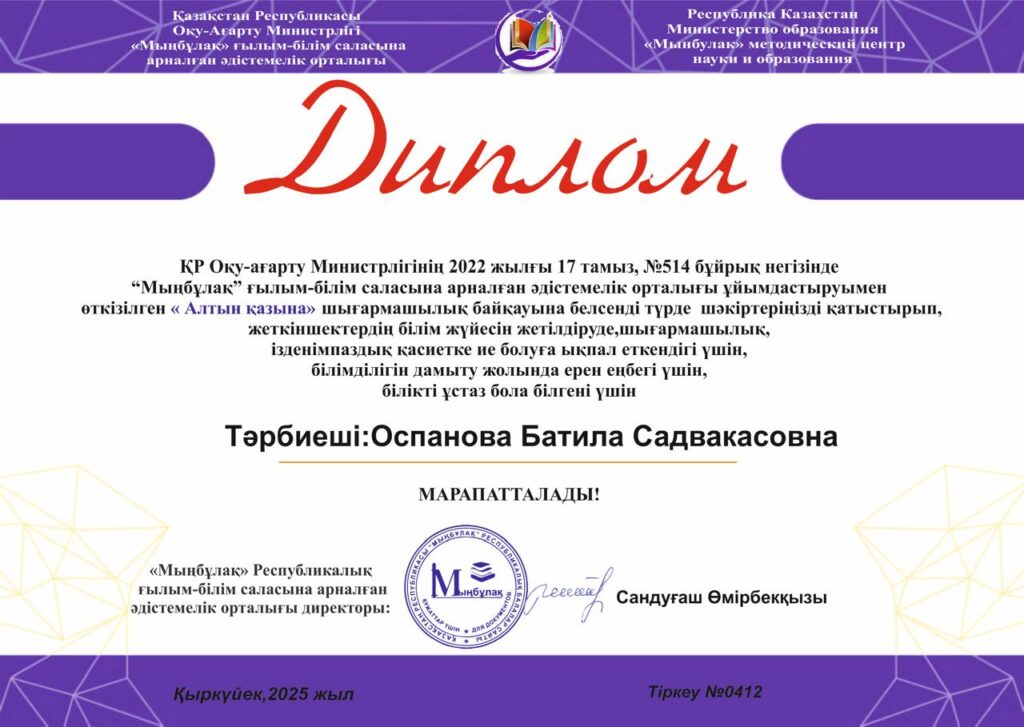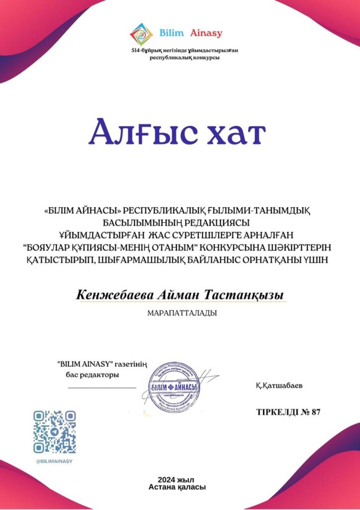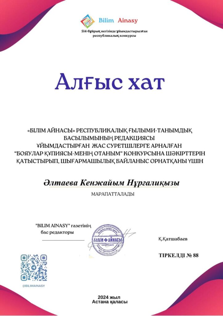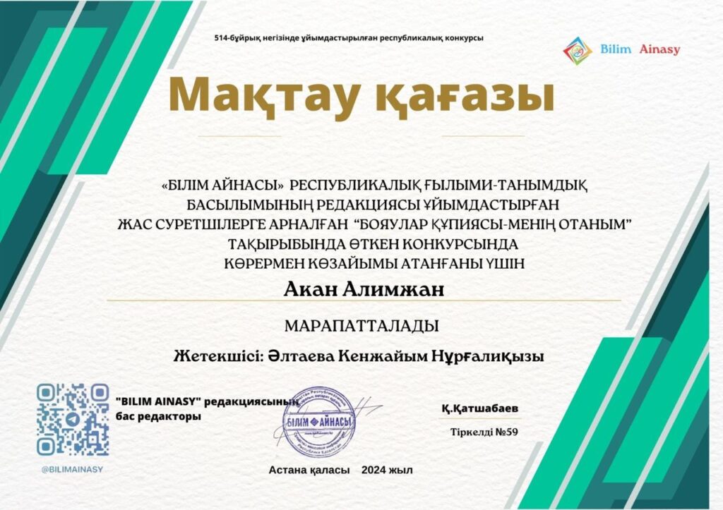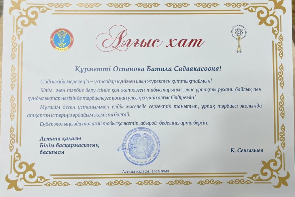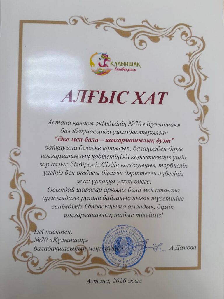 Біз сенеміз, балалық шақ — тұлғаның негізі қаланатын ерекше кезең. Біздің міндетіміз — балаларды ынталы, жауапты әрі мейірімді, командада жұмыс істей алатын және өзгелердің даралығын құрметтейтін адамдар етіп тәрбиелеу.